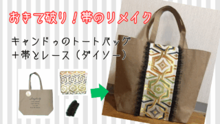 帯のリメイク 【帯のリメイク】キャンドゥのトートバッグを、帯とレース(ダイソー)でリメイク 掟破りの帯のリメイクです。キャンドゥで買った550円のトートバッグを、帯とレース(ダイソー)でおしゃれにリメイクしました。これならリメイク初心者も成功間違いなし。 2025.10.19 帯のリメイク